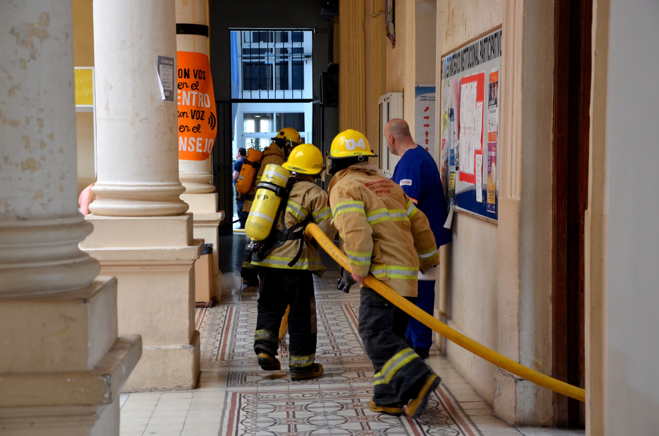 Este evento que, aunque no fue sorpresa, sí requirió de la rápida acción de toda la comunidad educativa. Participaron de manera rotunda estudiantes, becarios, nodocentes, docentes, y más de 30 colaboradores de nuestra Casa de estudios, quienes fueron claves para lograr una rápida y segura evacuación. Además tuvimos la colaboración de bomberos Voluntarios de Paraná, el Servicio de Emergencias Médicas (SEM) y oficiales de tránsito.