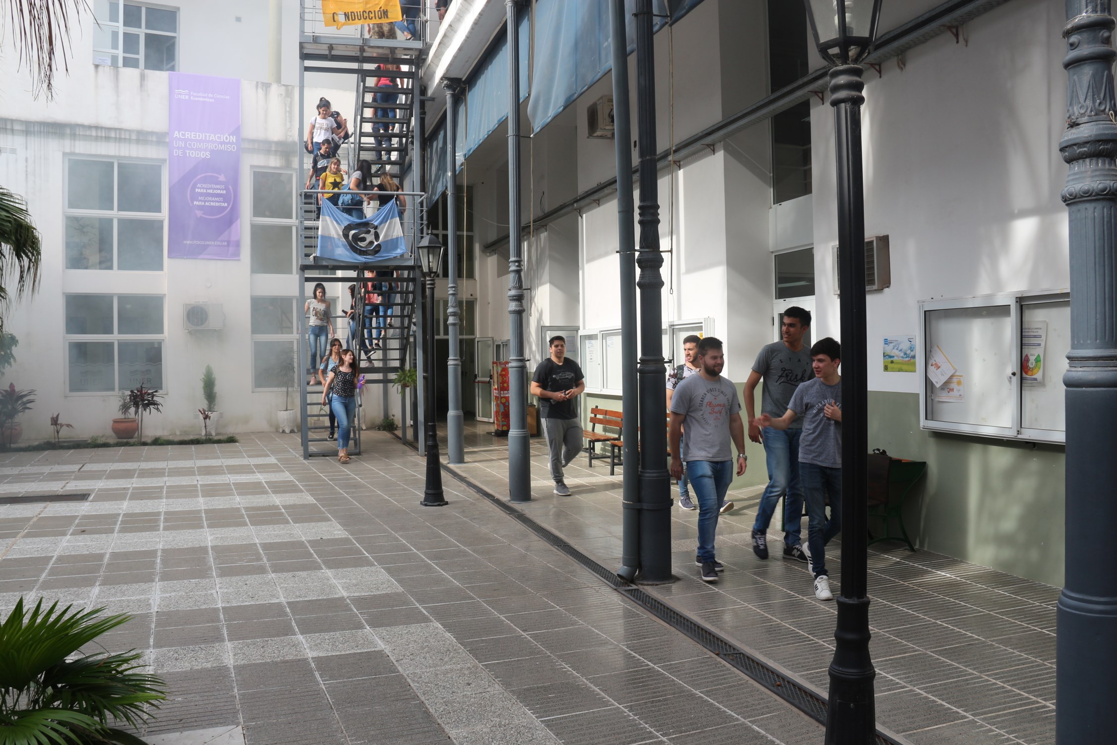 El decano de la Facultad, Eduardo Muani destacó que “la mayor cantidad de aulas están en la planta alta pero nuestro edificio ha implementado tres salidas de emergencias: una por calle Urquiza, una por Ferré y otra por La Rioja, lo cual nos permite hacer una evacuación ordenada y lo más rápidamente posible.”