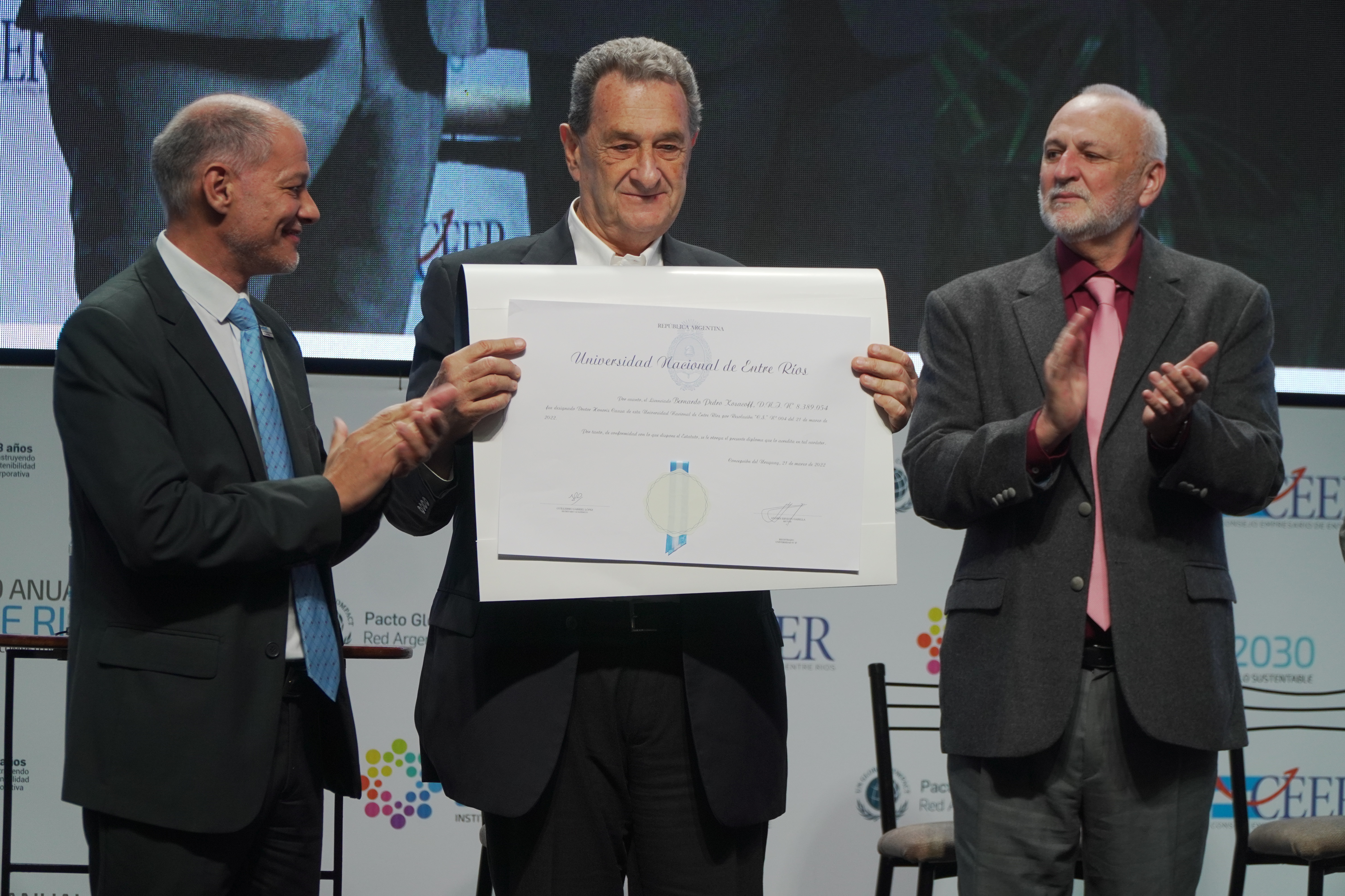 El acto se realizó en el marco del XV Foro Anual del Consejo Empresario de Entre Ríos (CEER), en el Centro Provincial de Convenciones de Paraná. Luego de la apertura del Foro, a cargo de su presidente Héctor Fratoni, el secretario de Hacienda de la Municipalidad de Paraná, Eduardo Macri y el cierre del Gobernador Gustavo Bordet, se dio paso al acto académico.