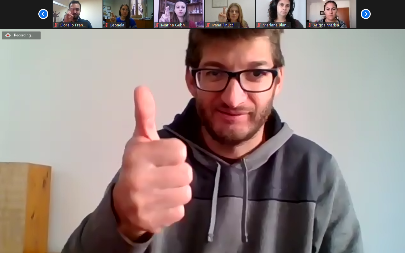 «Estamos muy contentos con el inicio de esta capacitación en lenguaje de señas para todo el personal administrativo y de servicios y docentes. No solamente es un aprendizaje, es algo con lo que están muy contentos y gustosos los participantes. Es una deuda, algo pendiente que teníamos en nuestro Plan Estratégico» relató Sebastián Pérez, Vicedecano a cargo de la Secretaría Académica de la Facultad de Ciencias Económicas.