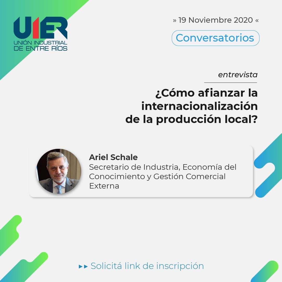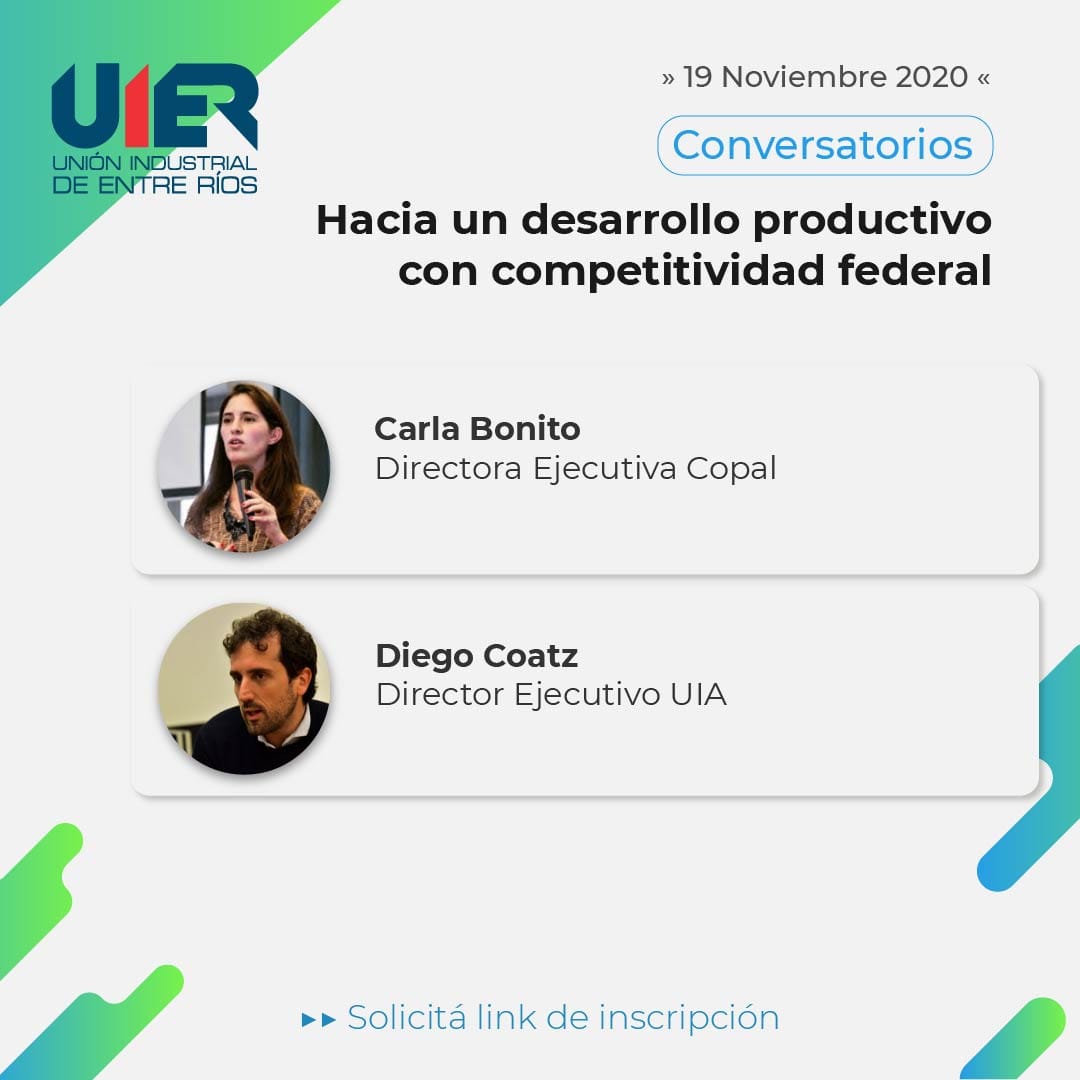 El encuentro virtual se realizará el próximo 19 de noviembre, con la participación de las autoridades de la Unión Industrial Argentina y la Unión Industrial de Entre Ríos, además del gobernador Gustavo Bordet, funcionarios nacionales y provinciales, y el embajador argentino en Estados Unidos. Más información en http://uier.org.ar/conversatorios-federales/.