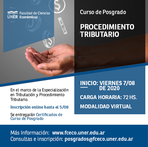 El curso de posgrado «Procedimiento Tributario» se trata de una propuesta en el marco de la Especialización en Tributación y Procedimiento Tributario.