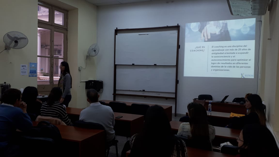 En el marco del Programa Facultad & Mundo Laboral, dentro del ciclo «Camino a la Gerencia», se llevó a cabo esta tarde un encuentro sobre Coaching. Nos acompañó la Cra. Estefanía Gelroth, especialista en Coaching ontológico.