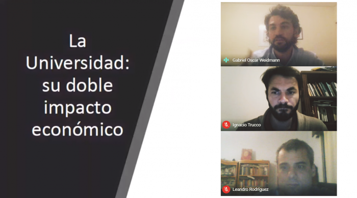 Ante un importante marco de público que de manera virtual participó de la conferencia, este jueves por la tarde los investigadores del CIEFCE Leandro Rodríguez, Ignacio Trucco y Gabriel Weidmann presentaron el informe N° 32: “El rendimiento económico de la Inversión Pública en Educación Superior: el caso de la UNER”.